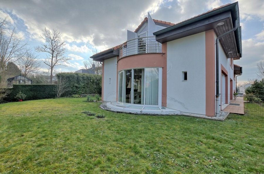 Louis MATHIEU RE/MAX Partners, spécialiste de l'immobilier à Bertrange vous propose à la vente cette superbe maison individuelle de 1997 sur un terrain de 7,59 ares. Elle dispose d'une superficie habitable d'environ 443 m² pour 527 m² au total. Cette demeure au charme unique au Grand-Duché vous séduira par son cadre reposant, ses volumes impressionnants, et encore beaucoup d'autres avantages.La maison se compose au rez-de-chaussée : d'un vaste hall d'entrée avec dressing/penderie et WC indépendant, d'une spacieuse et lumineuse pièce de vie séjour et salle à manger de 72 m² avec plusieurs baies vitrées donnant accès sur une grande terrasse et le jardin, d'une cuisine équipée indépendante de 24 m² avec son coin repas et avec un accès sur une autre terrasse et le jardin, et un grand garage de 45 m² pouvant accueillir deux véhicules avec pièce chaufferie.